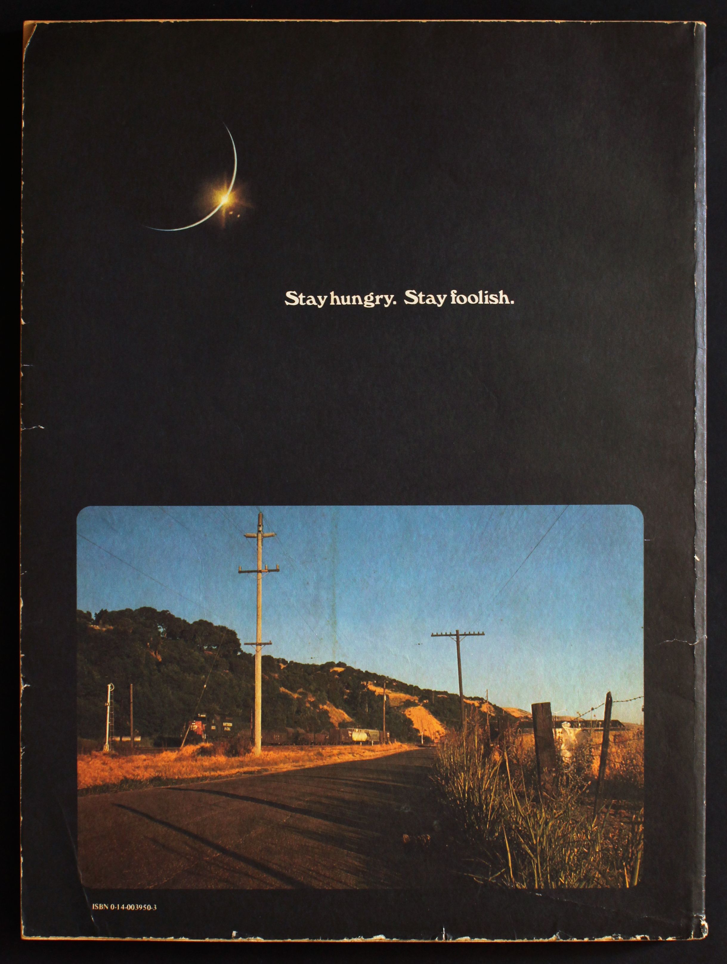 "Stay Hungry. Stay Foolish." from the back cover of the Whole Earth Catalog, published in October 1974.
